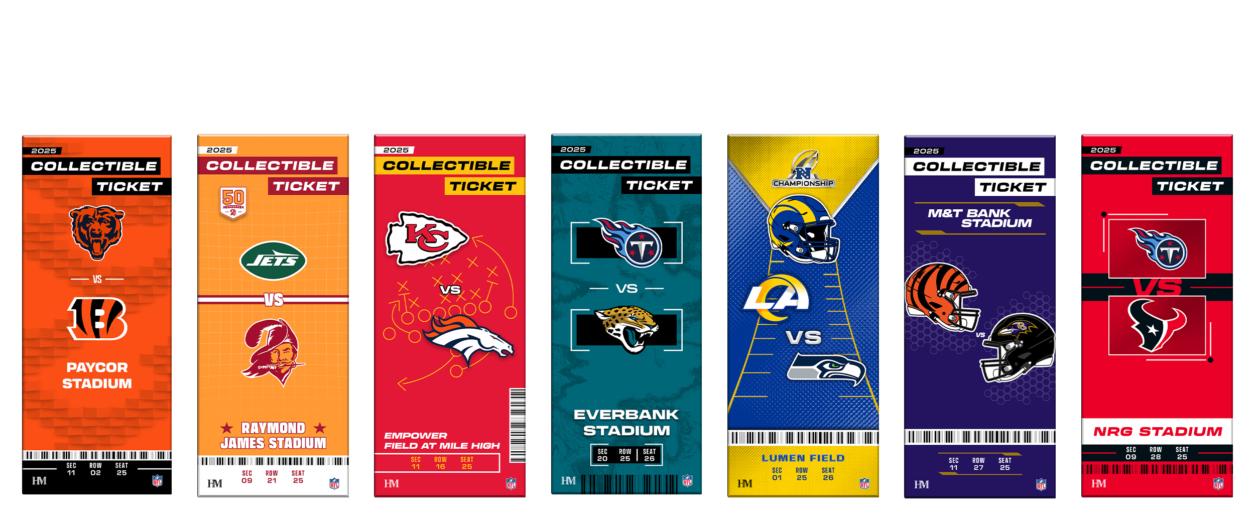 The 2025–2026 Commemorative Ticket series was designed as a flexible system across ten professional football teams, each aligned with their colors, logos, and identity. The designs act as templates, allowing each game to follow a consistent structure while adapting to each team. This required careful planning around color, logo placement, and spacing to keep everything cohesive.